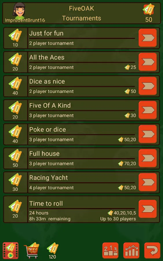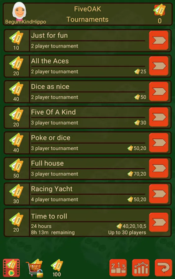 Play solo, play yatzy with friends on the same device or take on others from around the world with the built in tournaments. In tournament mode each player gets the same dice sequence. Use your yatzee skills to score the highest number of points to win the tournament.