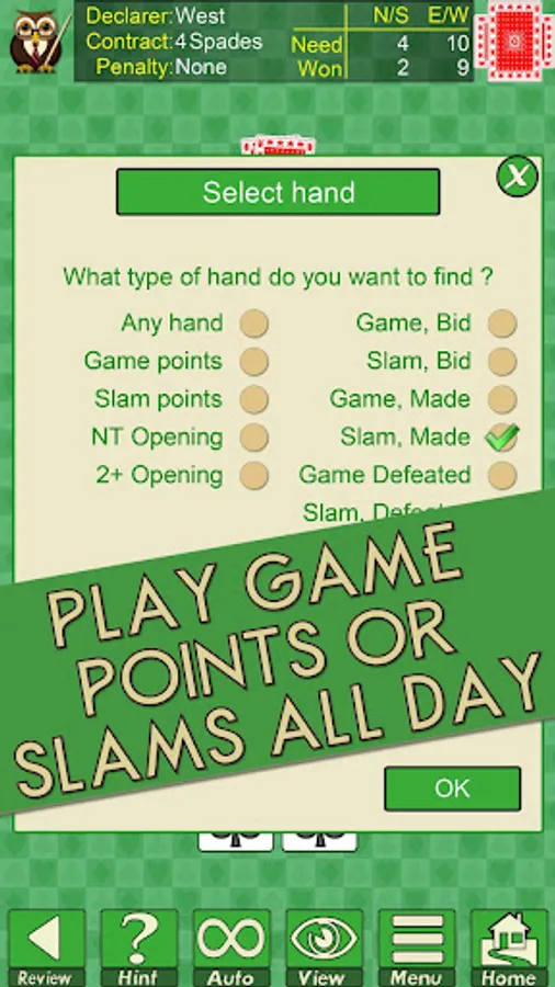 * Search for hands to play game points or slams all day if thats what you want to do.
