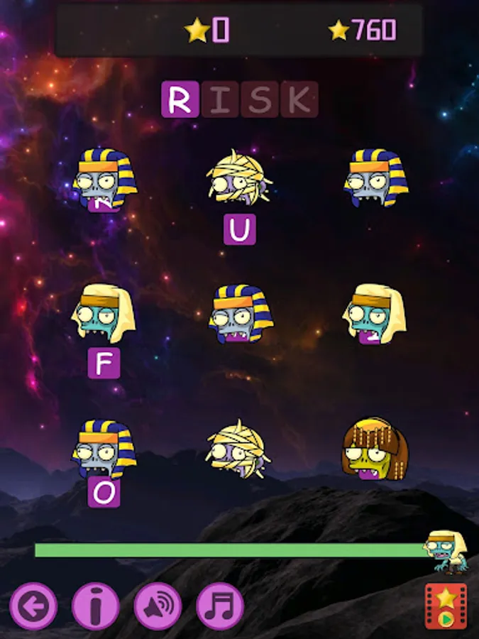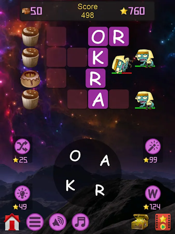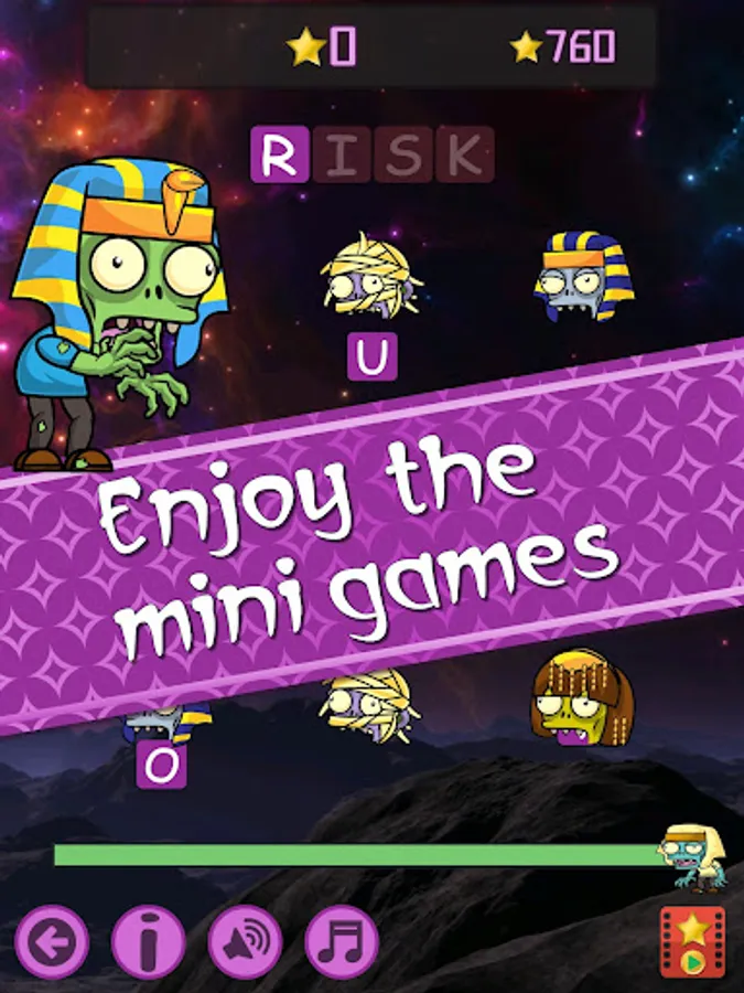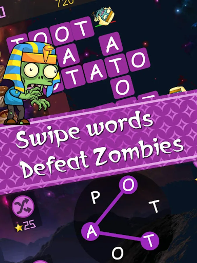 This engrossing and addictive word game takes the best features of wordsearch, word scramble and crossword games to a new level as you fight off zombies to maximize your score.