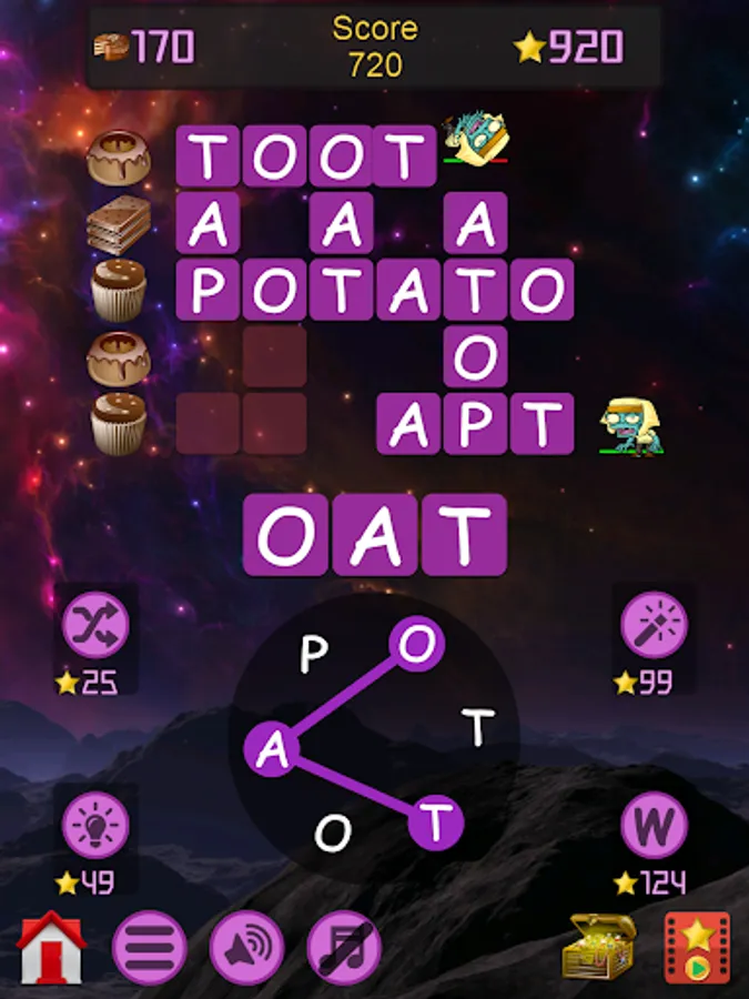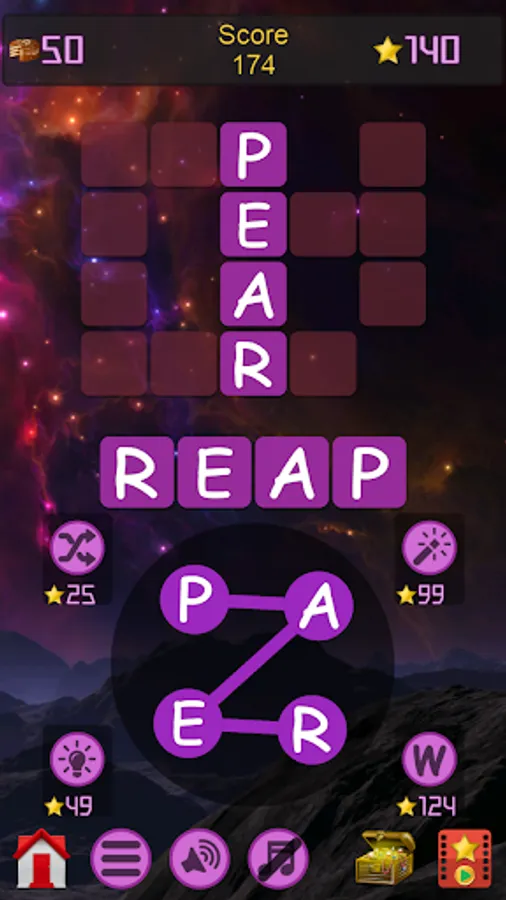 Swipe the letters to form the keyword and make alternate words. Complete the crossword grid to complete the level. If you create words not in the crossword you score a bonus. Use the bonus stars to shuffle the letters or provide hints. As you proceed through the levels the puzzles become more challenging so use your bonus stars wisely.