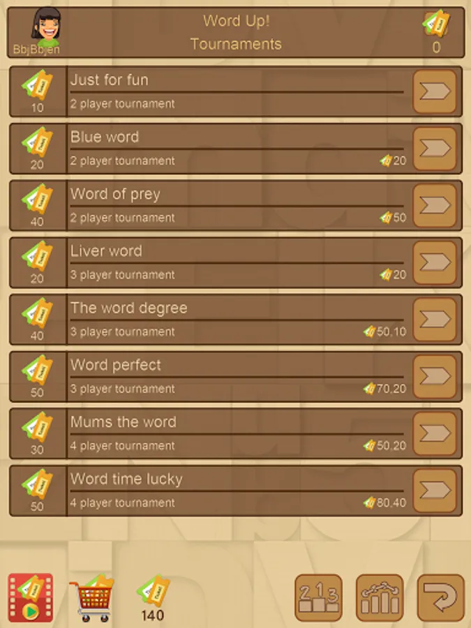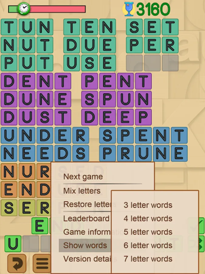 Play solo or against others in tournaments. In tournament mode each player is given the same master word. The player that scores the highest number of points wins the tournament.