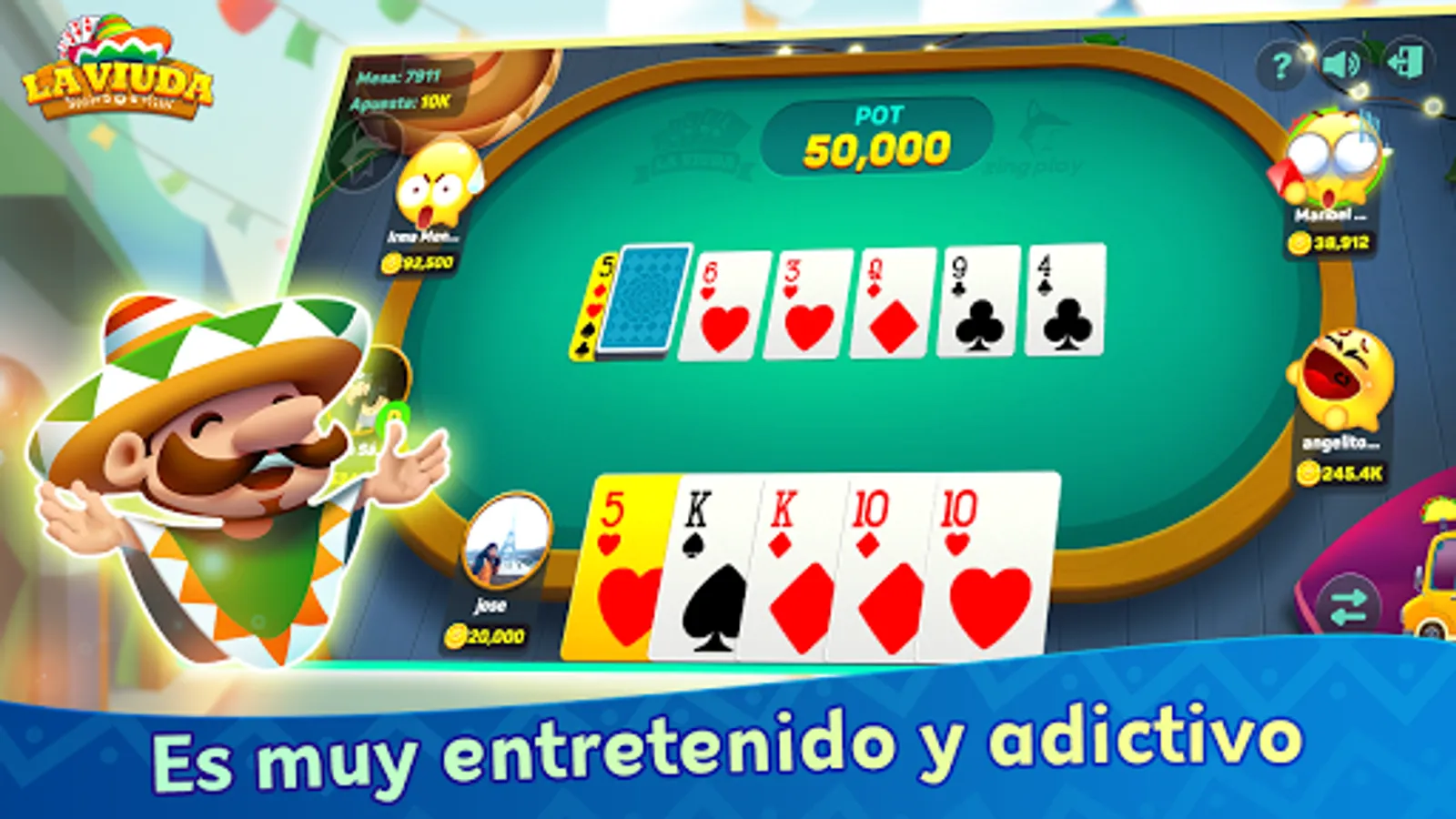 “La Viuda ZingPlay - Mexican Whiskey Poker” is the first multiplayer online game of “La Viuda” in Mexico, it can be downloaded for free through Google Play Storeand allows you to play online with your friends using your smartphone and your internet connection.