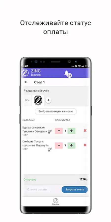 Zing Cash Desk is an application for business accounts of the Zing system.