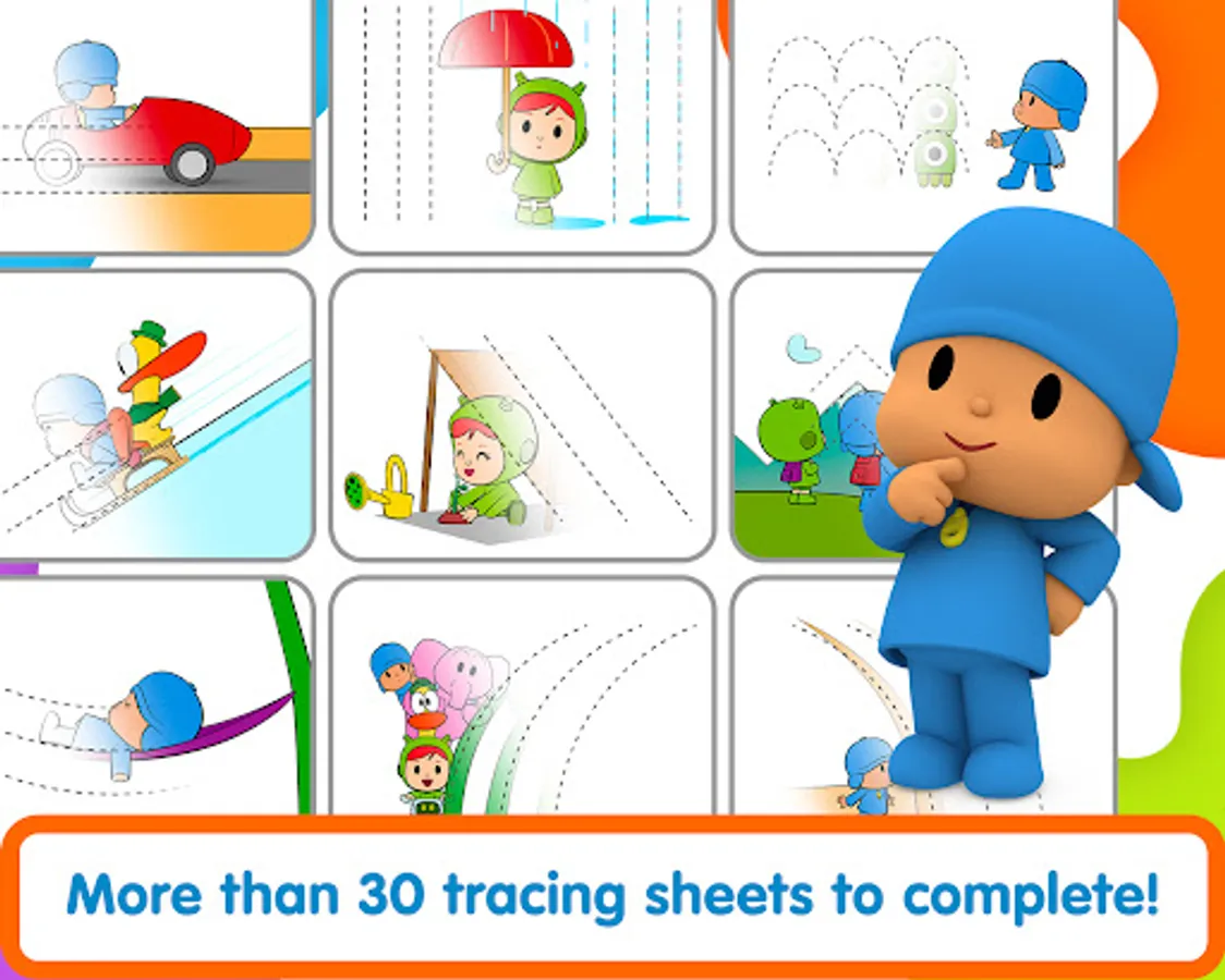 All the sheets are set in the wonderful children's world of Pocoyó and his friends, and feature fun animations and effects that will act as positive reinforcements, stimulating kids and strengthening their self-confidence as they progress.