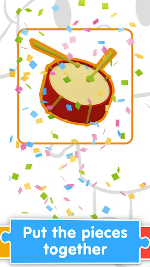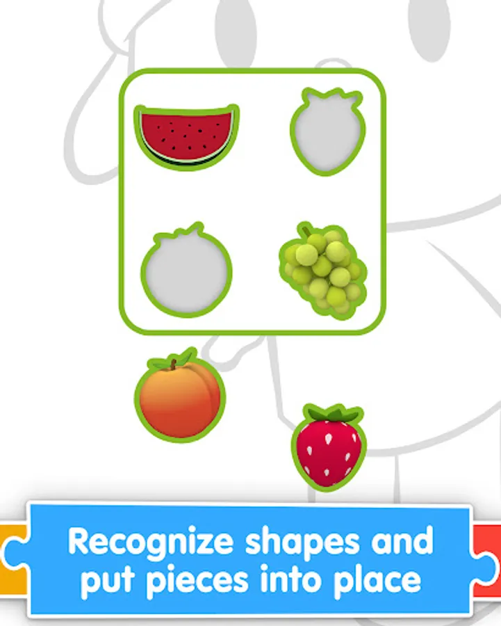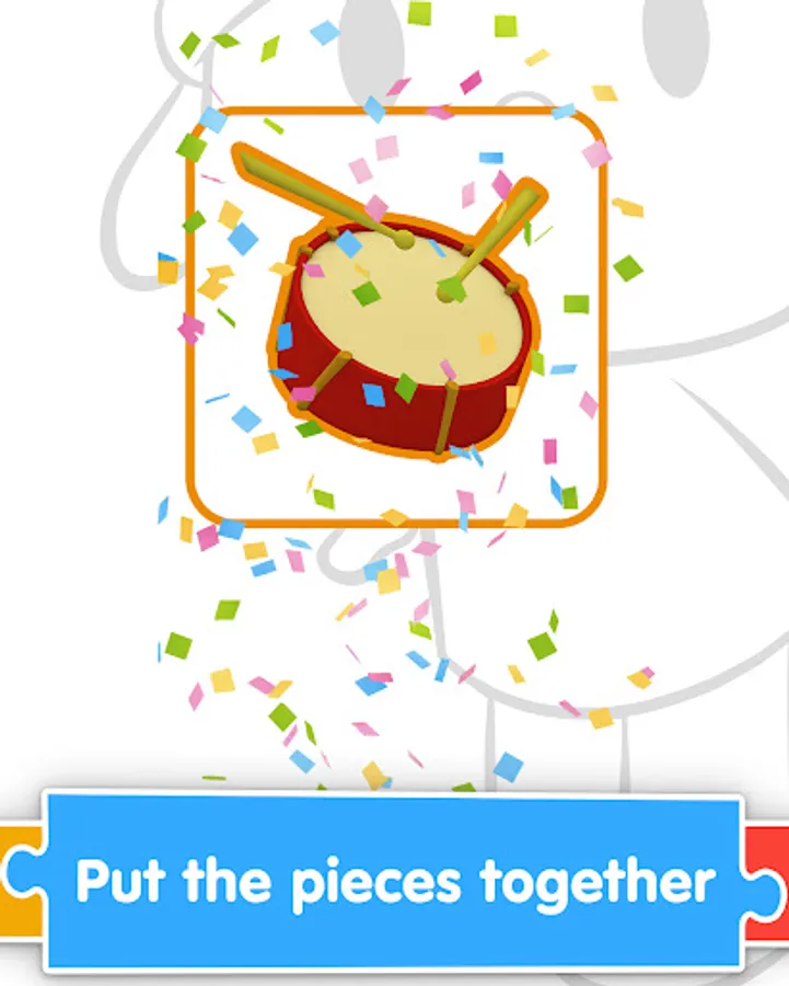 In the Fit the Pieces Together and Recognize Shapes modes, if they don't place the part precisely in the right place, a sound will tell them that to try again. When they manage to complete the puzzles, a confetti animation will congratulate them on doing so.