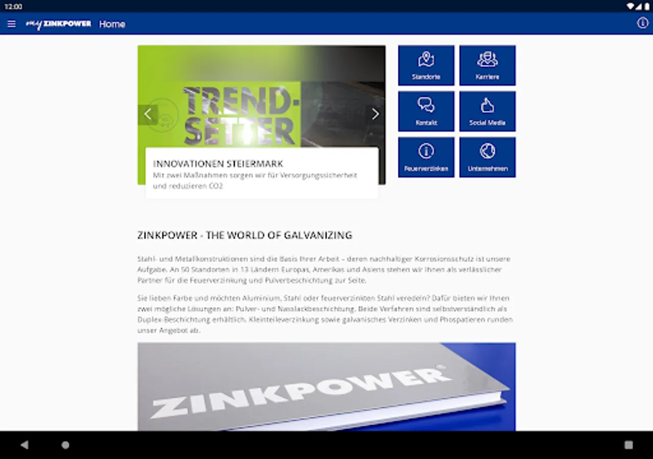 The app is aimed at partners, suppliers, employees and customers who are interested in the ZINKPOWER brand.