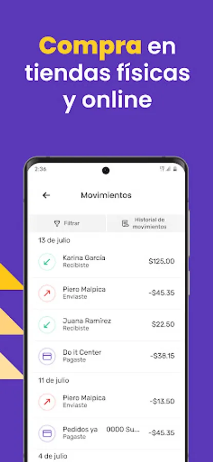 By using our electronic wallet you will have greater security in your transactions. If you lose or misplace your card details, you can lock or unlock it from the app