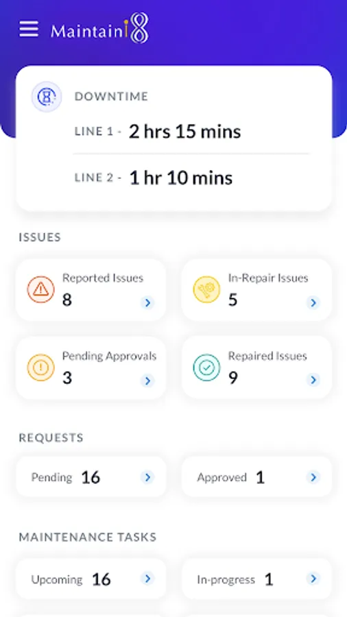 Maintaini8 is a full-fledged machine maintenance tool to do the following:
