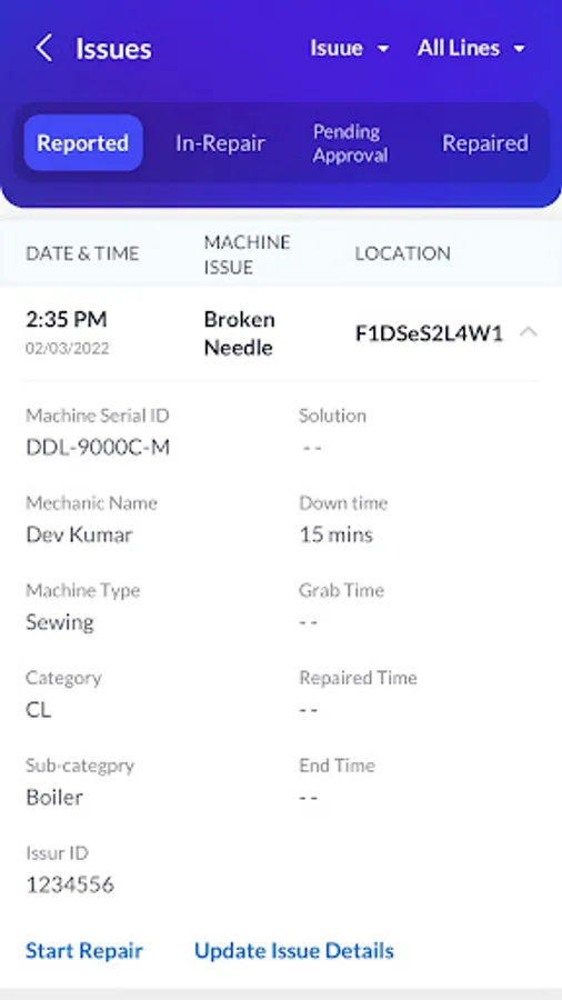 2. Accurate downtime tracking machine-wise and location-wise for every machine issue