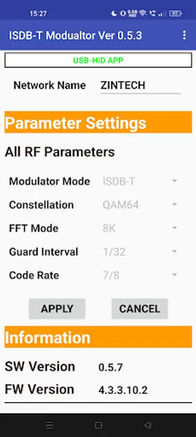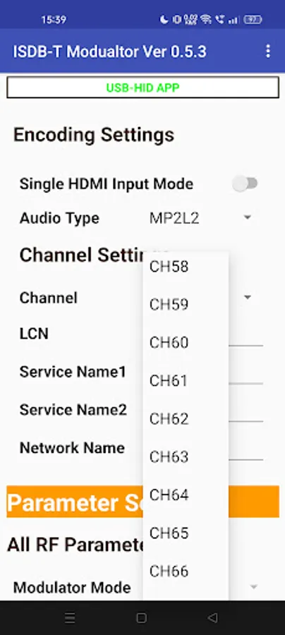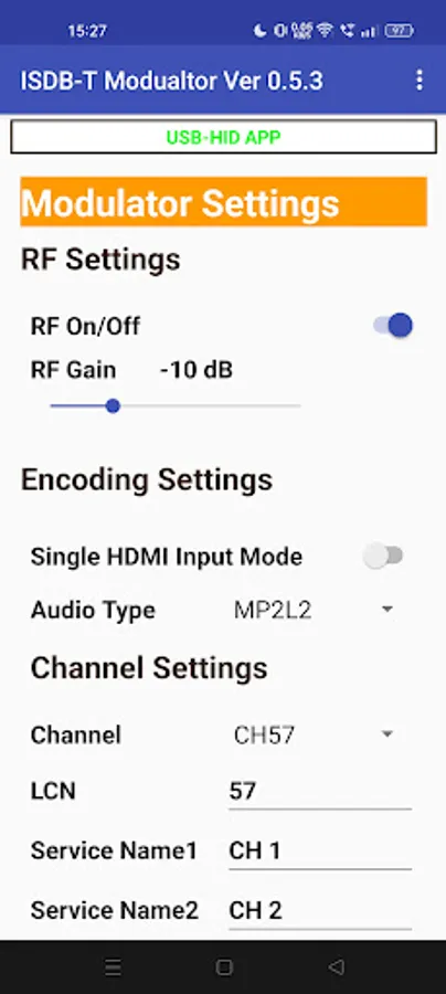 2. User can set up and change configuration for ISDB-T modulation, frequency, and video/audio settings.