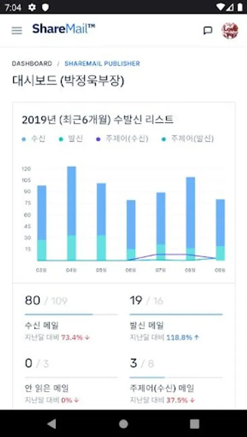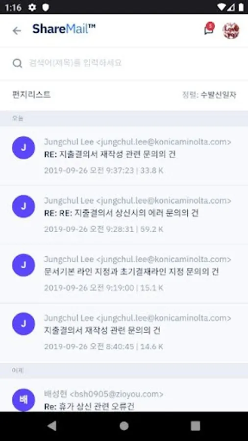 This app allows subscribers to share the publisher's incoming and outgoing mail by setting the Geoyu groupware user as the publisher and subscriber. It's a collaborative message that can reduce mail reception and sending rate by 1/10. Now, the company should replace each person's mail with sharemail. It is a mail system that can cope with changes in employees due to turnover.