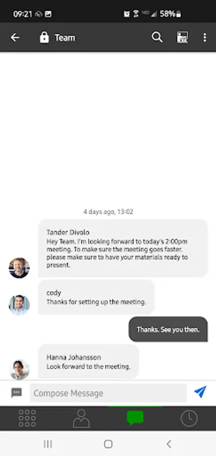 • Share files, photos, videos and more, and collaborate more efficiently without swapping between apps.