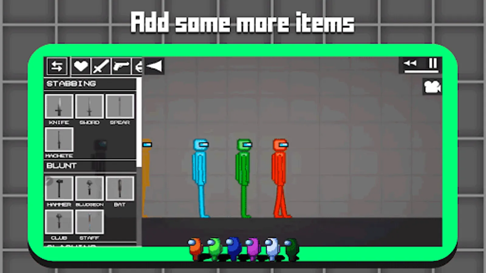 You can be as creative as you want with the among us mod melon playground, create a floor plan in mellon infinite space and you can make stories about among us playground very interesting. If in the previous mods for melon playground you didn't get various characters from among us mods, then with this you will get a complete set of colors red, blue, yellow and others according to the melon character playground mod.