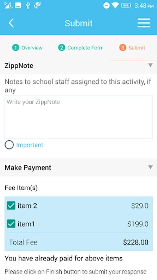 The ZippSlip Parent App allows parents of students in districts that use ZippSlip to electronically view and respond to communications from administrators and teachers. Parents can securely register their students, provide consent to field trips, respond to emergency contact forms, update medical forms, etc. Parents can also make payments electronically for school activities. Schools can send and receive forms and payments based communications. Schools can also send multi-media updates to parents to keep parents informed on their student’s school activities. ZippSlip keeps parents up to date on school activities more easily while eliminating the paperwork.