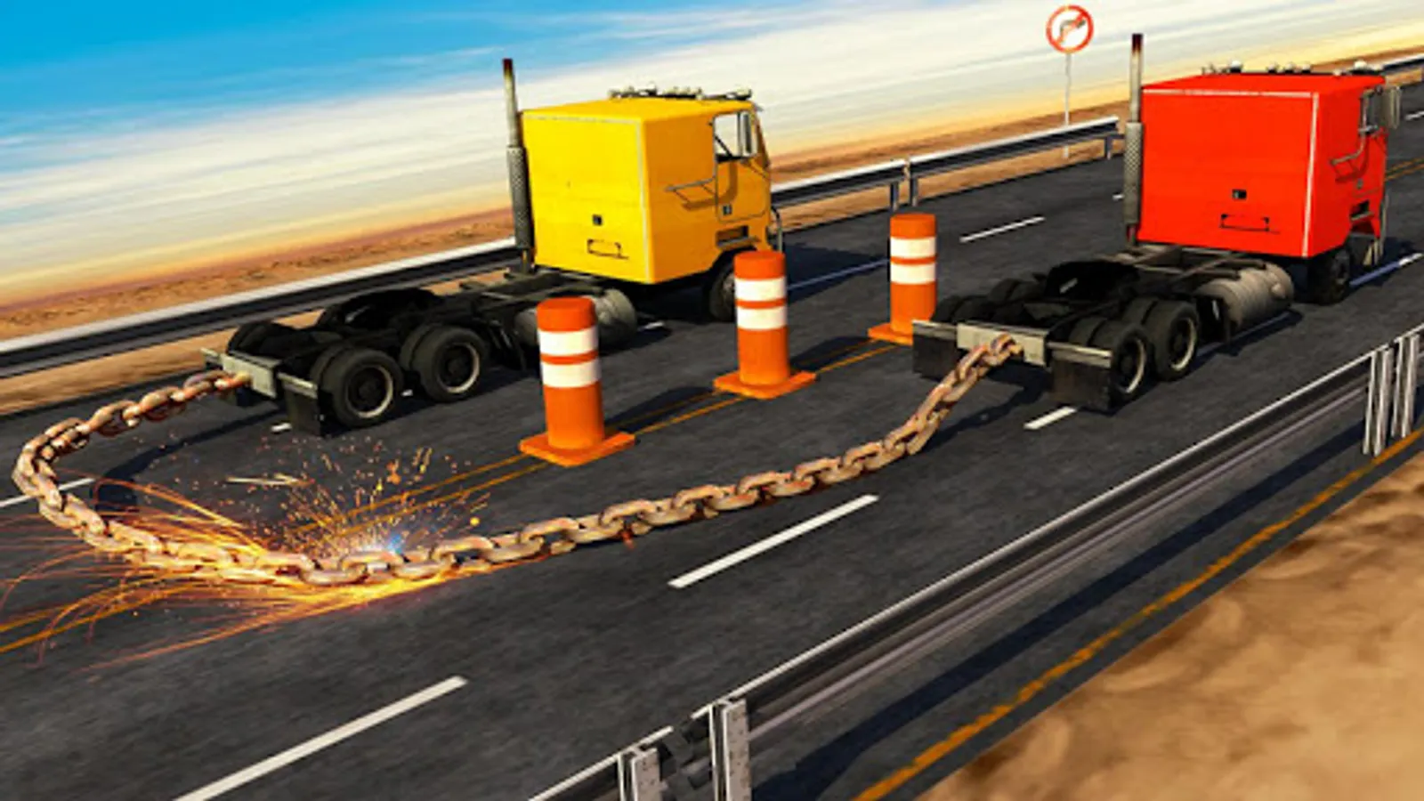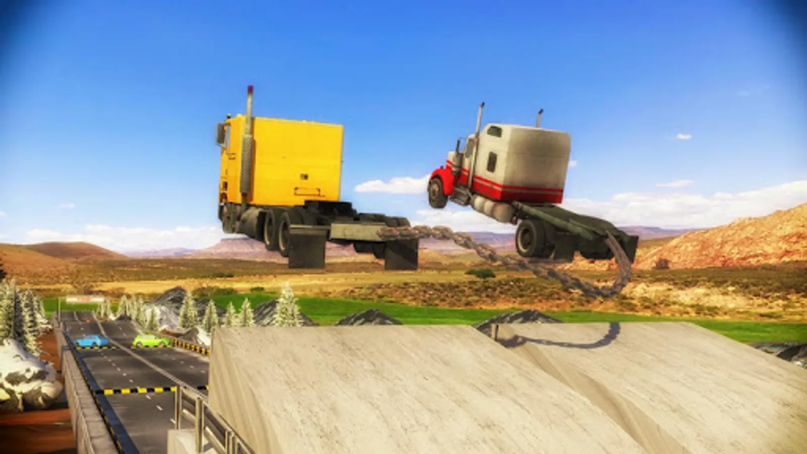 Chained Trucks against Ramp - is a awesome truck destroying game in which you can chain two trucks together and race them and then split them into pieces.
