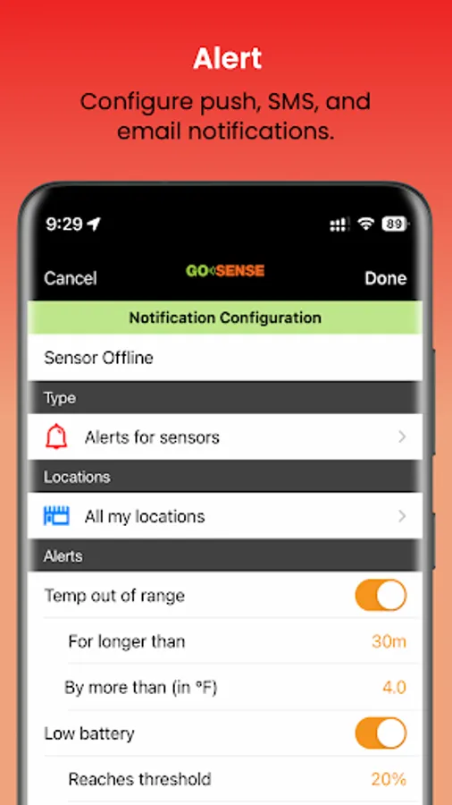 GoSense allows you to monitor your ZippyYum temperature and humidity sensors on the go, create and receive important alerts, and view historical data.