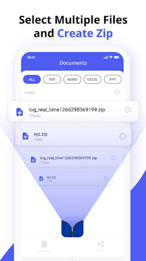 Zip Unzip file- Compress files app extract all types of files and create a zip file, and compressed Zip files at any place of your phone storage. Zip Unzip Files, Zip Extractor app allows you to manage zip to unzip files easily, rename, delete and share them.