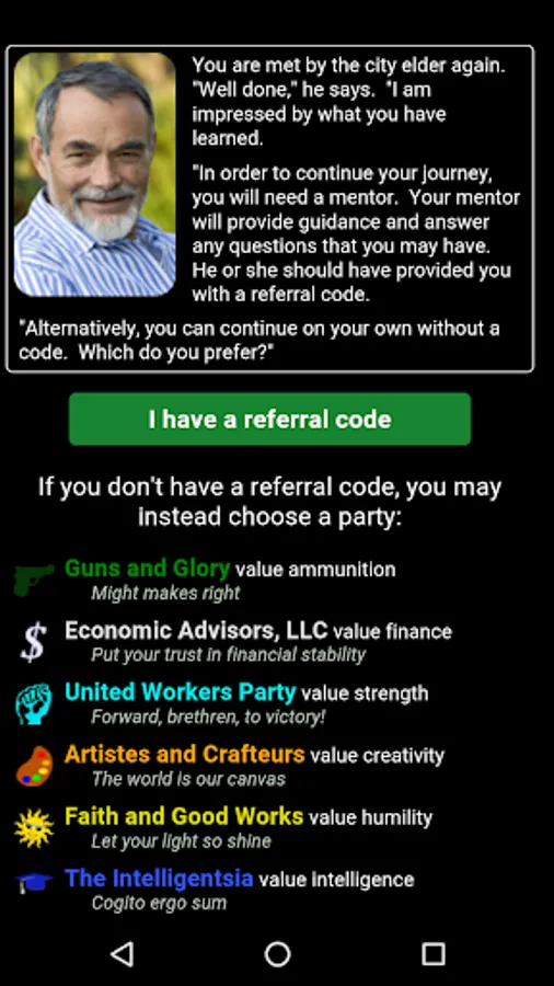 * Named clans, political parties, and elections help you advance your player and your clan