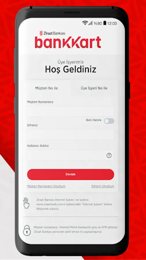 You can contact Bankkart Member İŞYERİM with the customer number and password information you use to log in to Ziraat Bank's Internet Branch.
