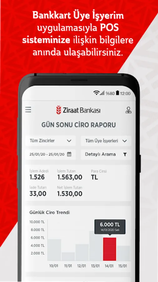 You can access detailed turnover reports of Ziraat POSs, compare your rank among the companies you are in the same sector in our bank, you can compare your turnover according to your turnover, monitor the demographic distribution of your customers using our bank card in your workplace and create your own report format.