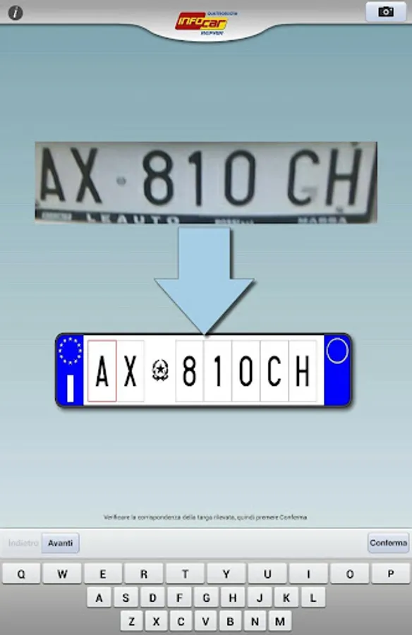 It allows to identify the vehicle by license plate number! The application is restricted to professional users who have subscribed to a product line Infocar.