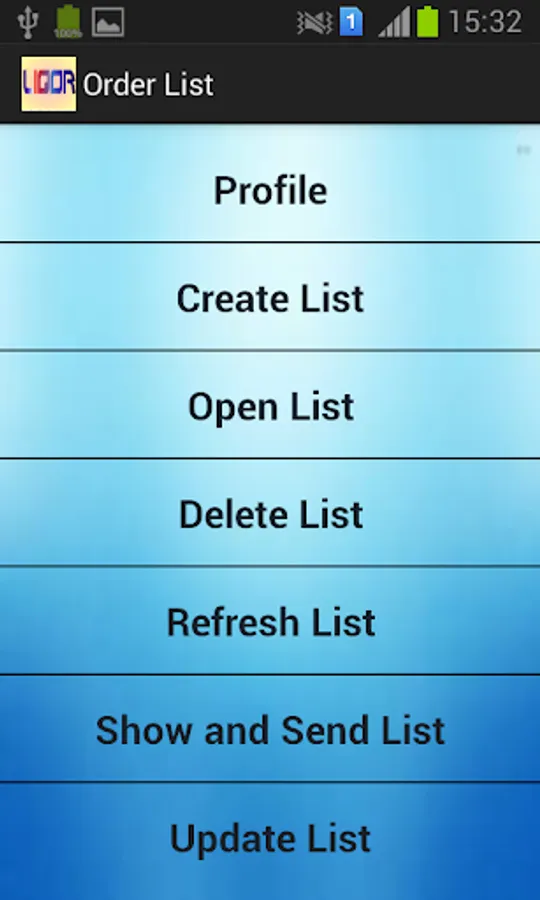 Main Screen of Application shows the various groups of items (whatever you insert). ‘Add new Items’ by using Main Menu or ‘Show and Send List’ which are already selected by you.