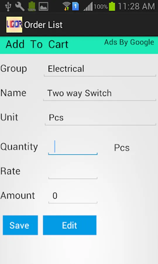 From the Main Screen, you may select the Group and get the list of items of the selected group. Now you can select an Item and enter the Quantity, Rate to get the amount. If you want to Edit the details of Items or change the Group then Select Edit button and change the Name and Group of the selected item.
