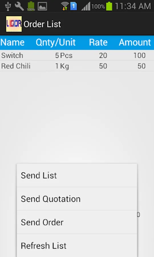 After sending this list you can ‘Refresh List’, to nullify all the selected Quantity, Rate and Amount and to make another list.