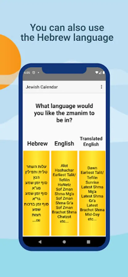 The Jewish Zmanim Calendar App is a special calendar that was created by Rabbi Ovadiah Yosef ZTL and used by him until he passed away. The app is designed to recreate this calendar and also includes an option to display the zmanim of the Luach Amudei Horaah created by Rabbi Leor Dahan Shlita.
