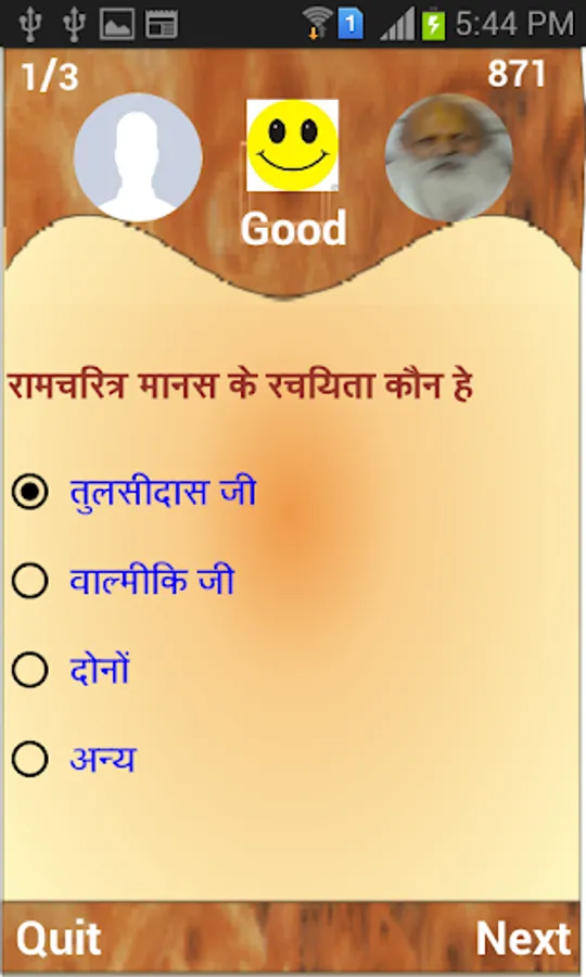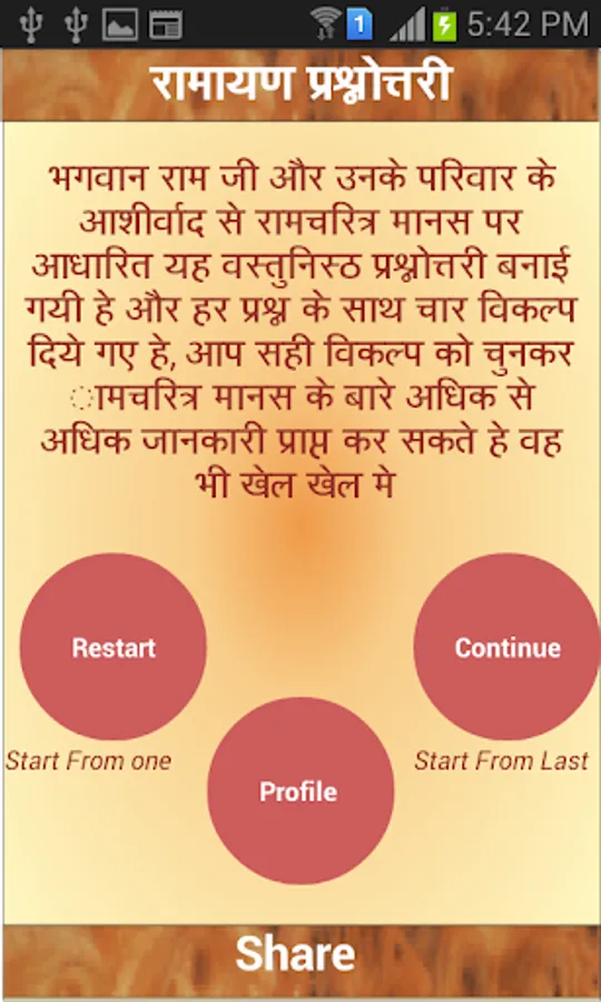 3. When you 'Continue' or 'Restart', our greatest Hindu Saint asks questions to you on the basis of Ramcharitra Manas