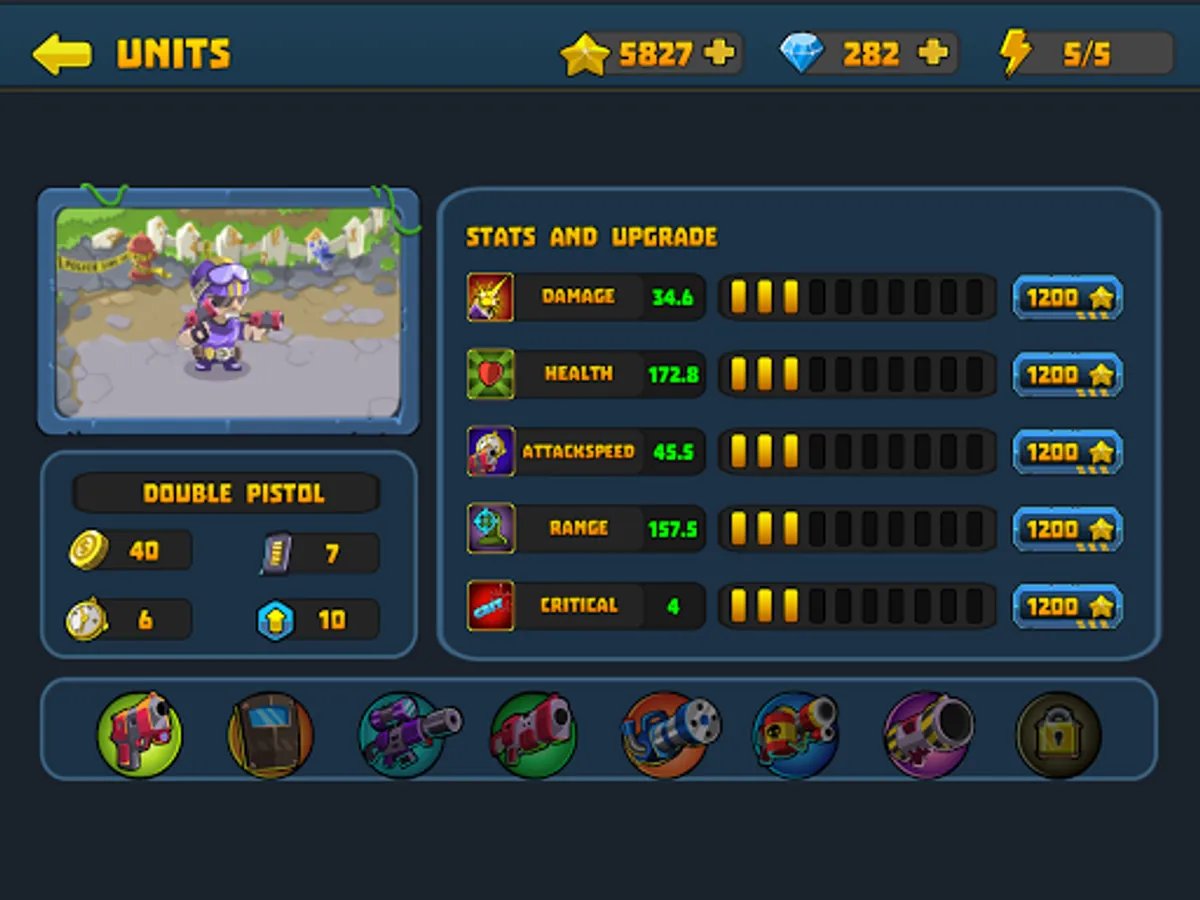 - 8 different heroes: Pistol, Tanker, Sniper…etc.