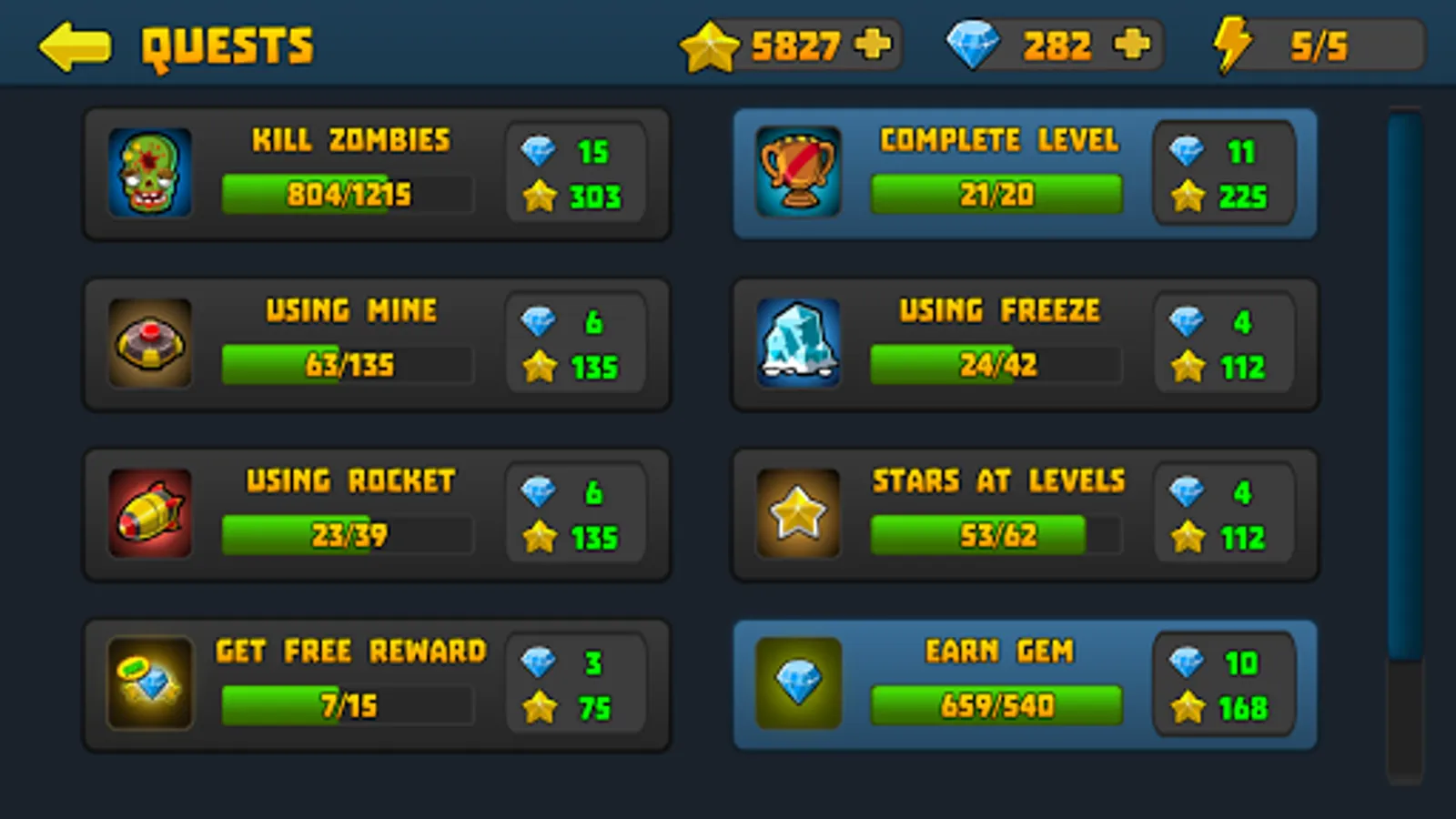 - 10 unique zombies: Chef zombie, Fireman zombie, Diver zombie…etc., with different abilities.