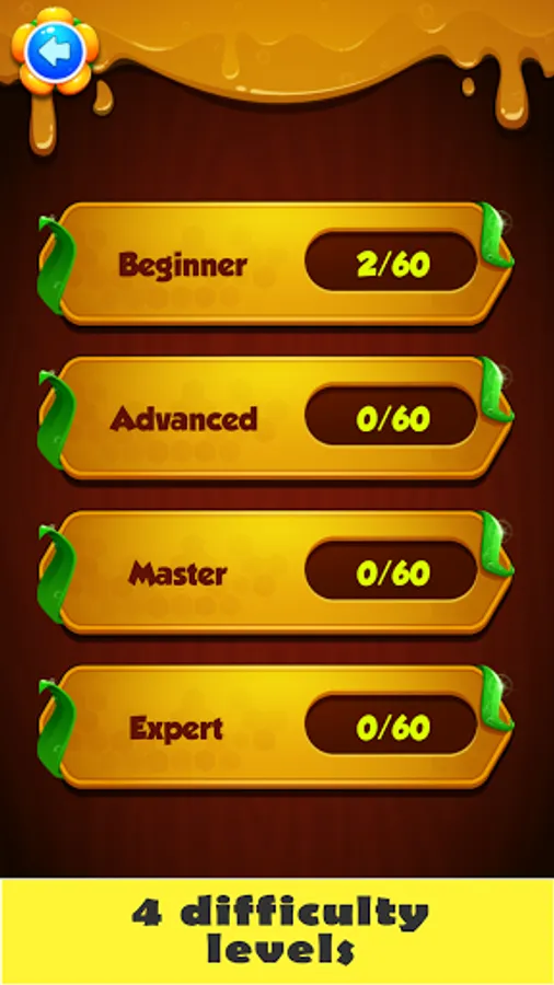 - Puzzle levels range from beginner to expert, the difficulty increasing each round