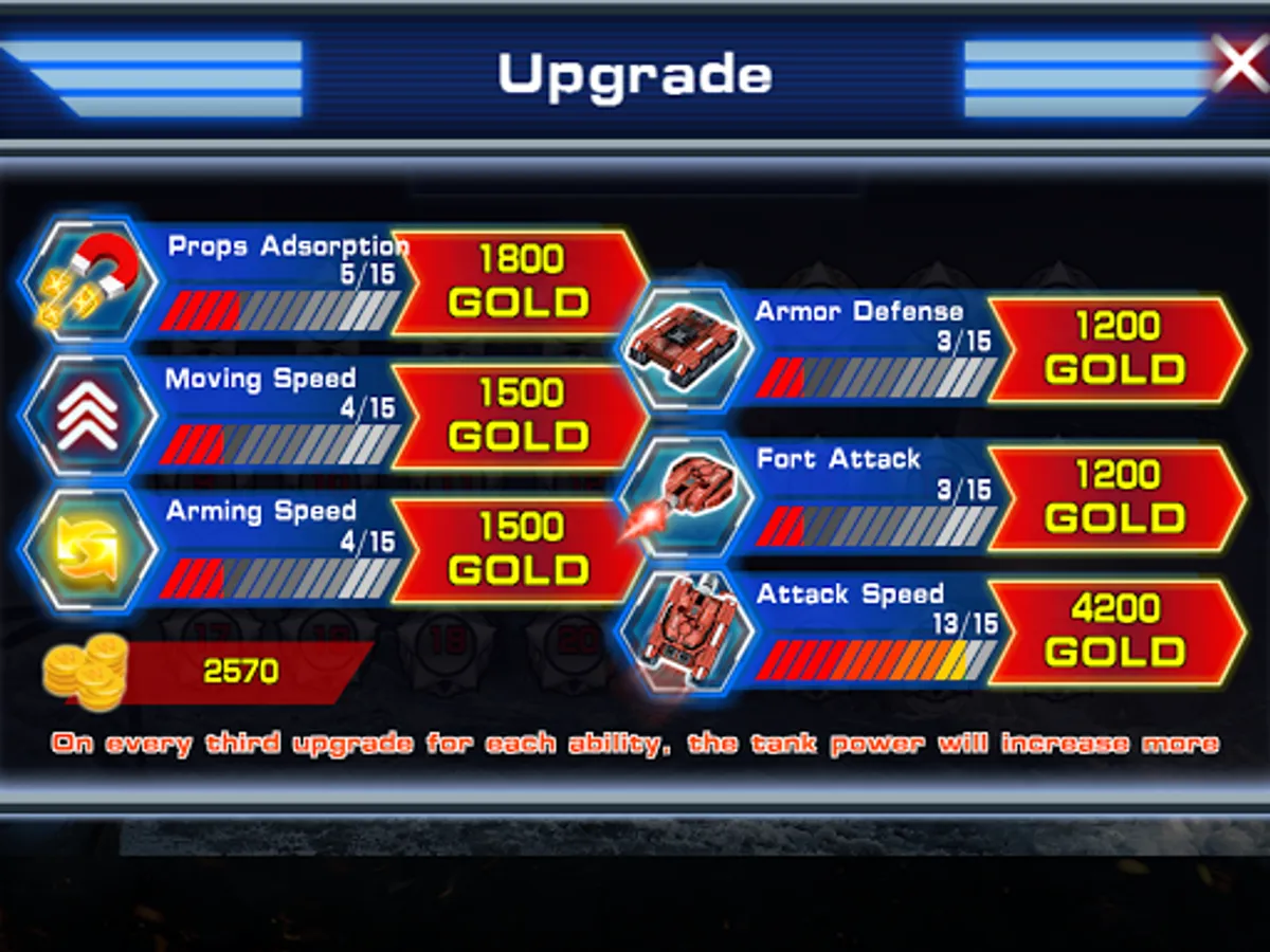 - Use the gold rewarded in the battle to buy power-ups or upgrade the abilities of your tank