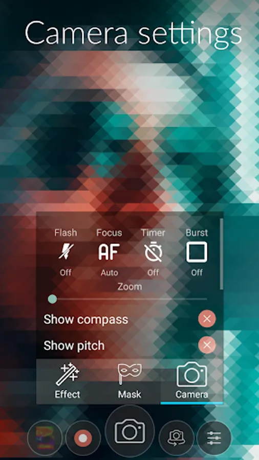 Standard effects are applied on your camera and images but using a mask. The results is a unique AR blend of actual images and filtered ... live.