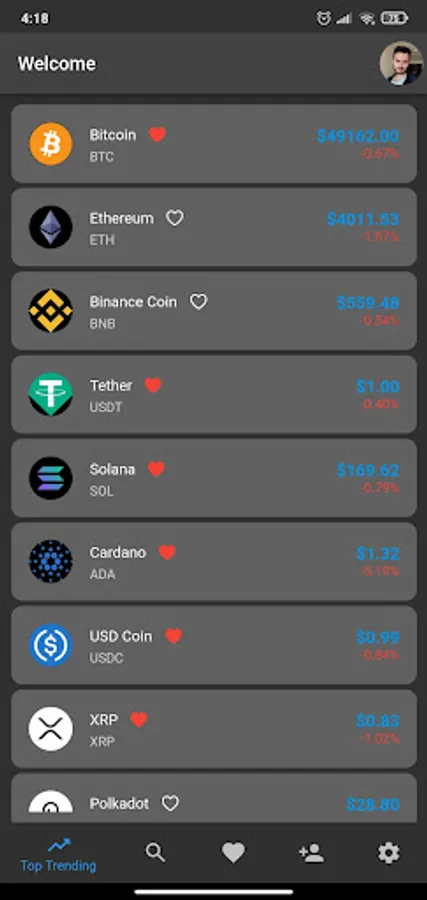 You can add the crypto coins you like or want to follow to your favourites.