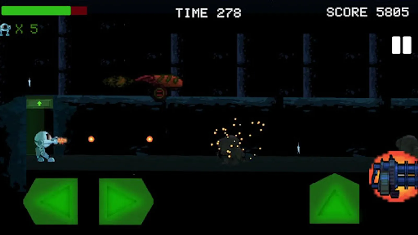 Stop the rise of an evil robotic tyranny, thin the numbers of this mechanical herd. Use all your firepower in our new action platformer.