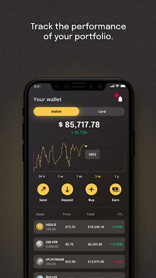 - Real-time portfolio: Track the performance of your portfolio and assets through the interactive chart and key token statistics.