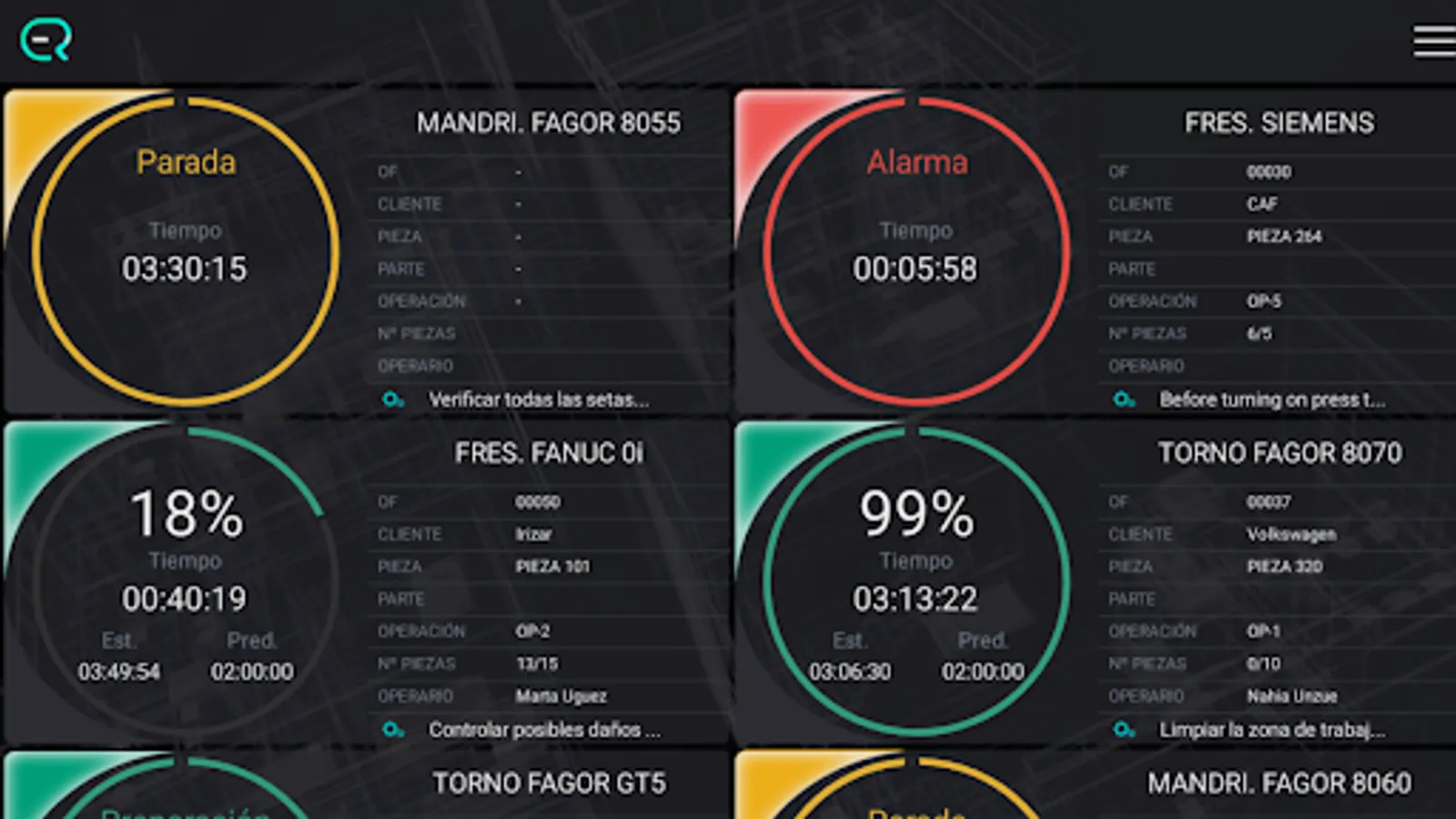 ERIS allows the increase of the OEE in the production by machine tool with numerical control. For this it offers: