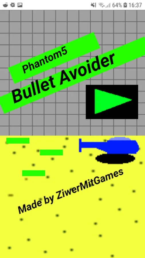 It's an infinite bullet avoider game. Take control of a phantom-5 anti-alien tank and avoid all lasers from the spaceships to get score but ,BE CAREFUL,It gets harder while you play!!