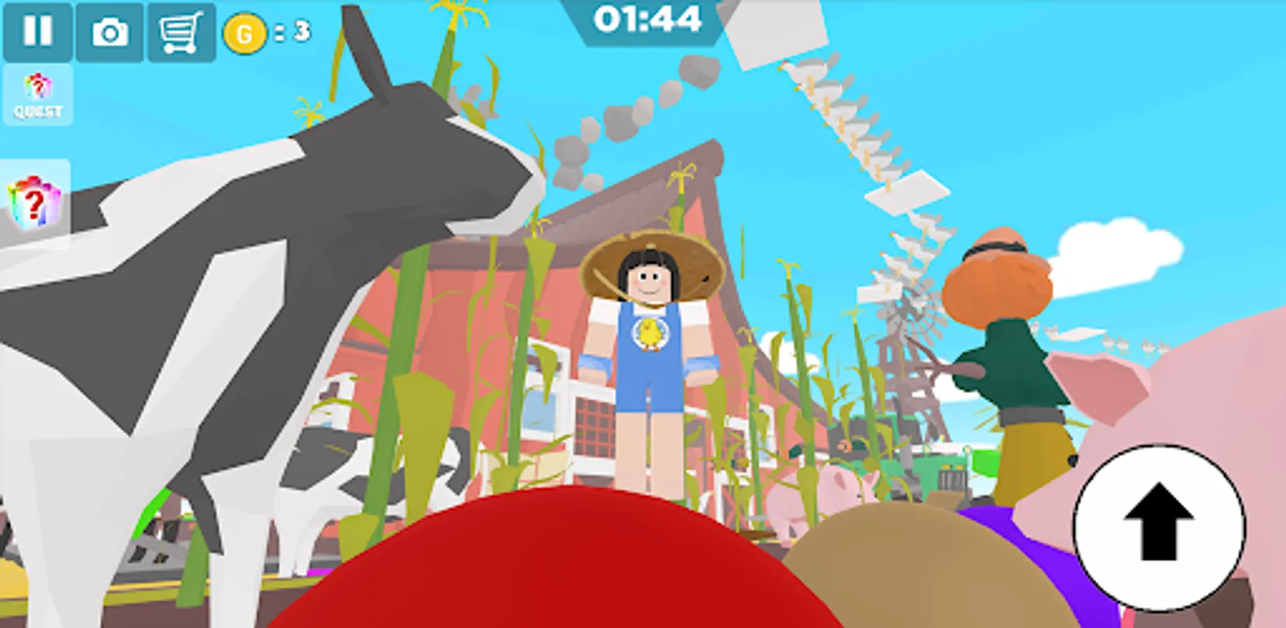 its really fun parkour around animal like chicken, cow, horse, and piggy on the big farm obby, its really fun to play together with your friend, lets play on farmer house parkour now!