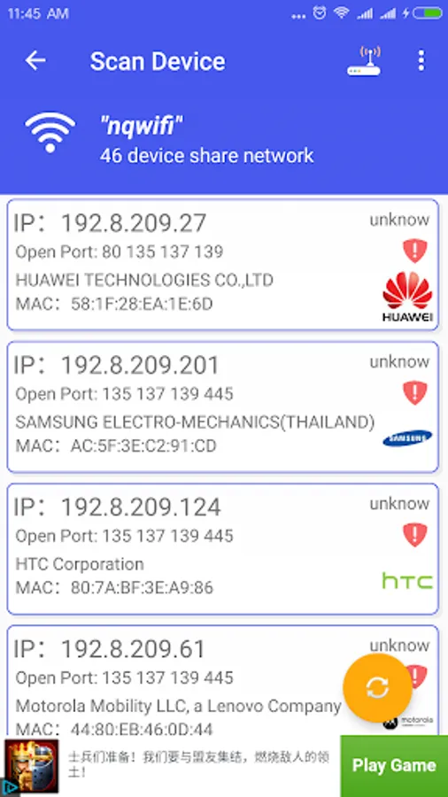 2. You can see your LAN users who secretly connect to your network! And scan its open port. Prompts you to prevent the closure of those who do not often use the port, so as not to be hacked!