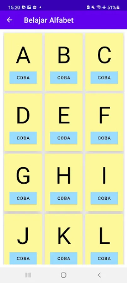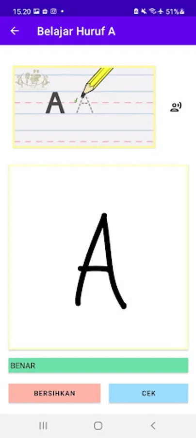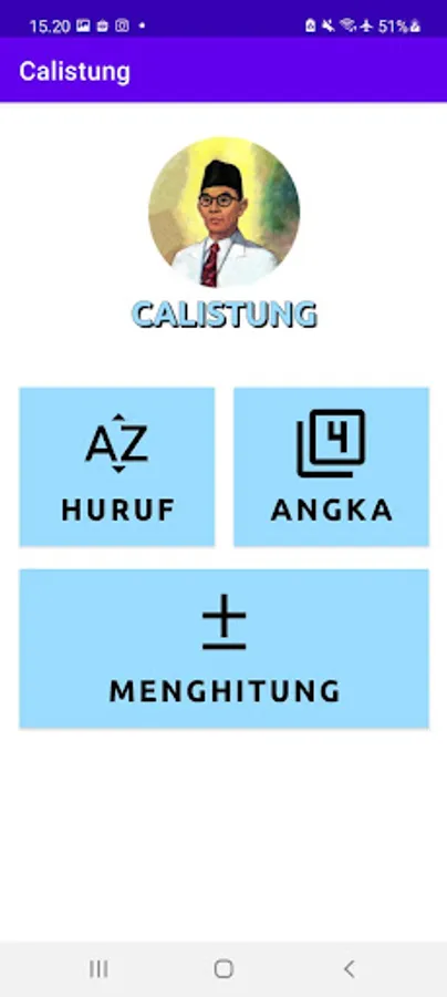 Applications that provide educational features such as writing, reading and arithmetic. The Calistung app has three menus: Learn Letters, Numbers, and Counting. Learning to read will be present in every menu because children can learn to pronounce the proposed characters/words with the Text-to-speech feature, as well as learn to write because they have to write characters/words. Learning to count will be in the Counting menu by studying addition and subtraction material (including Jarimatika), then practicing it. This learning application will have "Learning" and "Practice" sub menus in each main menu because children need to learn and practice the topic first before doing the exercises. The theory of the topic will be presented in the “Learn” submenu, right before doing the practice. The “Practice” submenu will present various exercises to strengthen children's calistung skills.