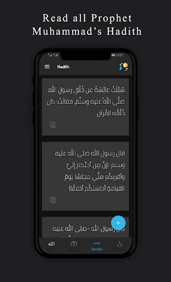 - Popping up Hadith Messages at every start up of the App (Can be disabled in settings)
