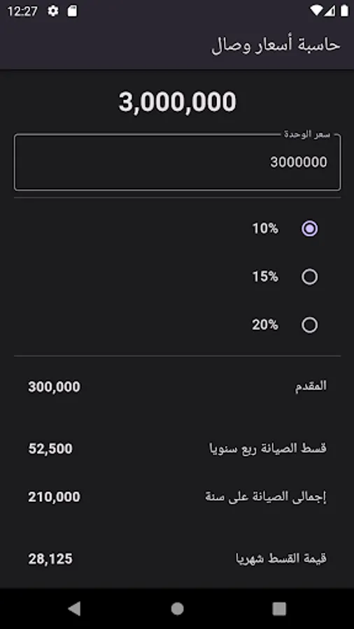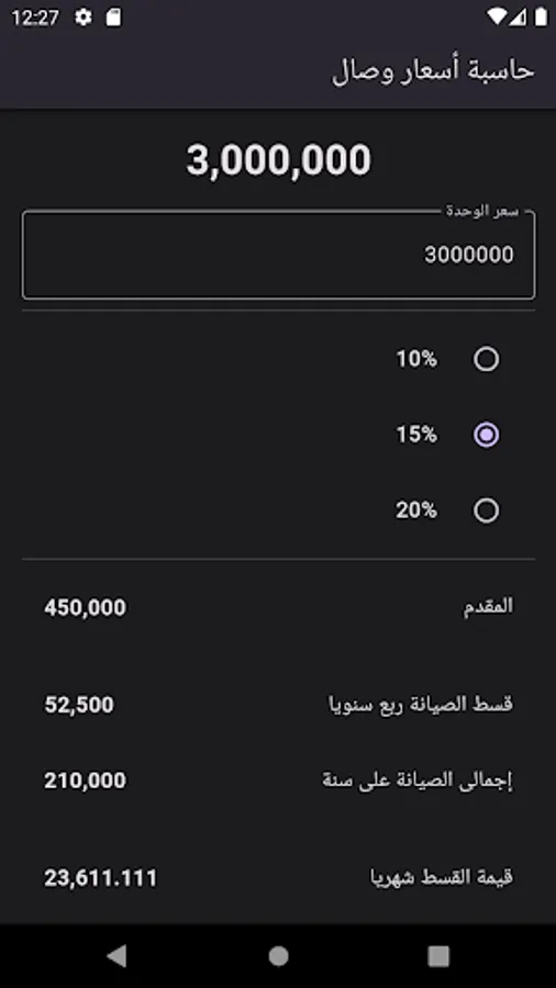 An application that calculates the total costs required to purchase an apartment in Wissal Compound in detail