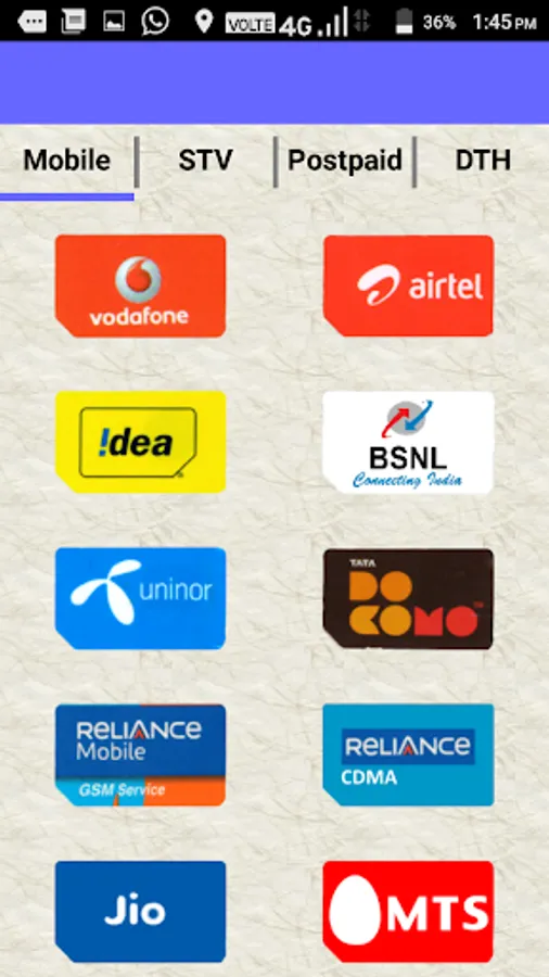 Application provides you the convenience of recharging your Prepaid, Stv, Postpaid and DTH services