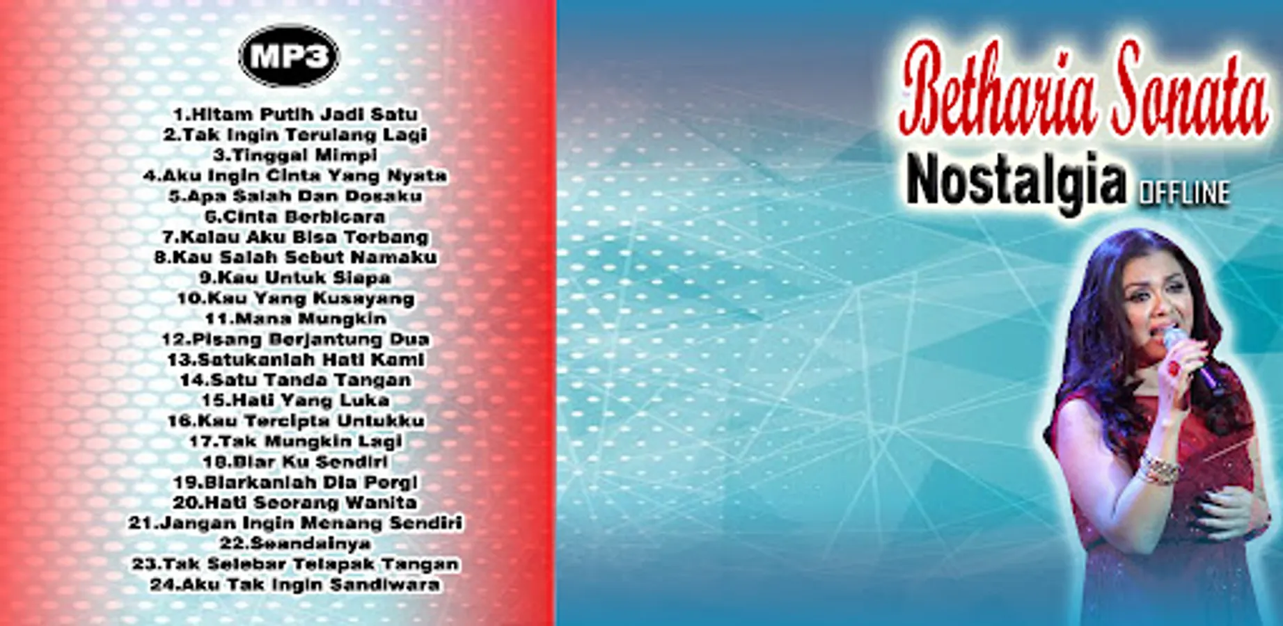 Betha, as she is affectionately called, is famous as a singer of Nostalgia songs which were hits in the 90s and led her to win a Golden Cassette. Since plunging as a singer, Betharia Sonata has spawned 30 solo albums. In addition to the Golden Cassette award, Betha also won 7 Golden Records. For those who like to hear Betharia Sonata songs, this application is the right choice. Because here we can listen to selected songs from Betharia Sonata with combinations that have been adapted to the sound and music according to the original, so they are right to accompany when relaxing or working. This Betharia Sonata Full Offline Mp3 song can also be heard anywhere even when you are not connected to the internet.