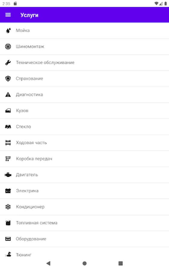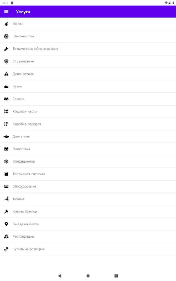 The application provides a wide range of services, including washing, tire fitting, maintenance, insurance, repairs and many other services.