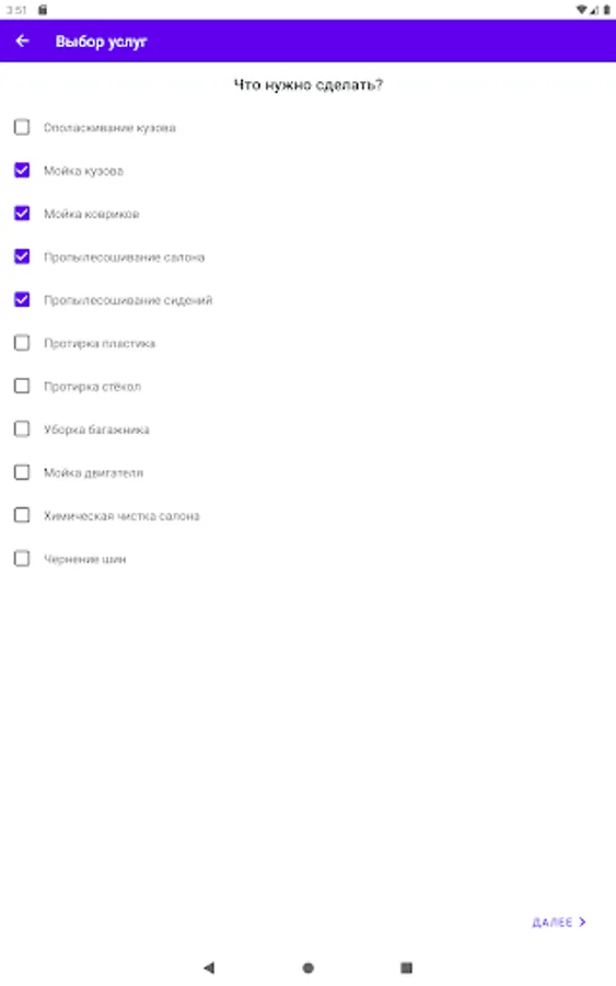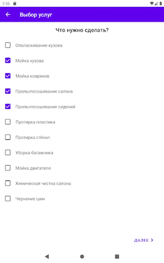 The application allows you to choose a convenient time for you and the nearest area to search for a car service.