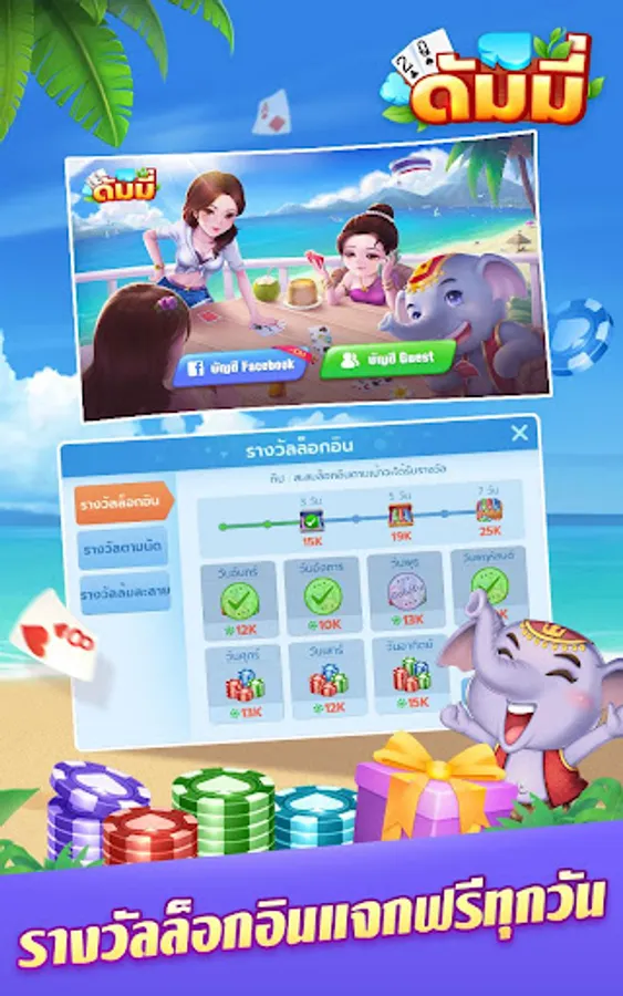 No need to apply, give away chips every day, log in with Facebook to get more chips, bright graphics, more fun playing cards.